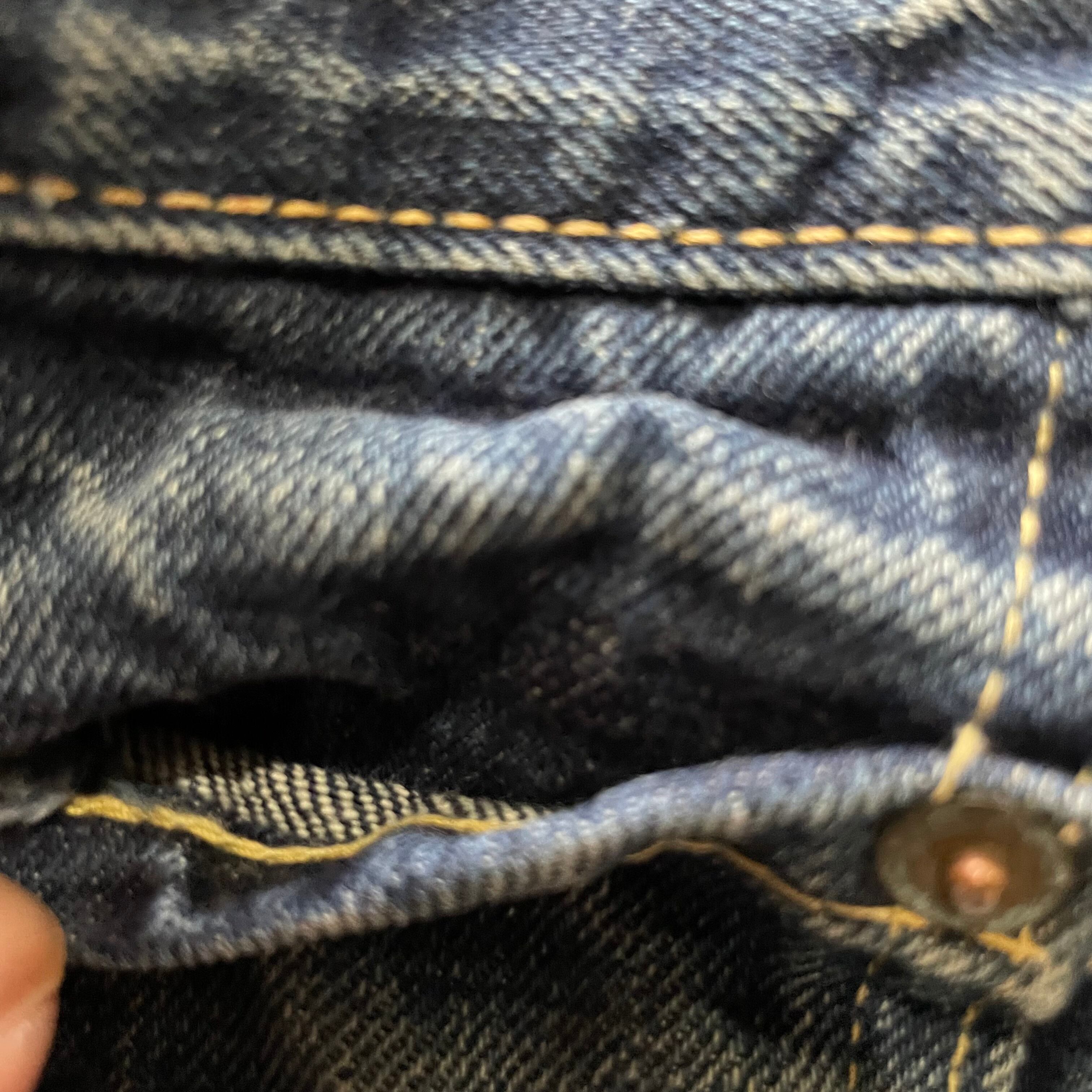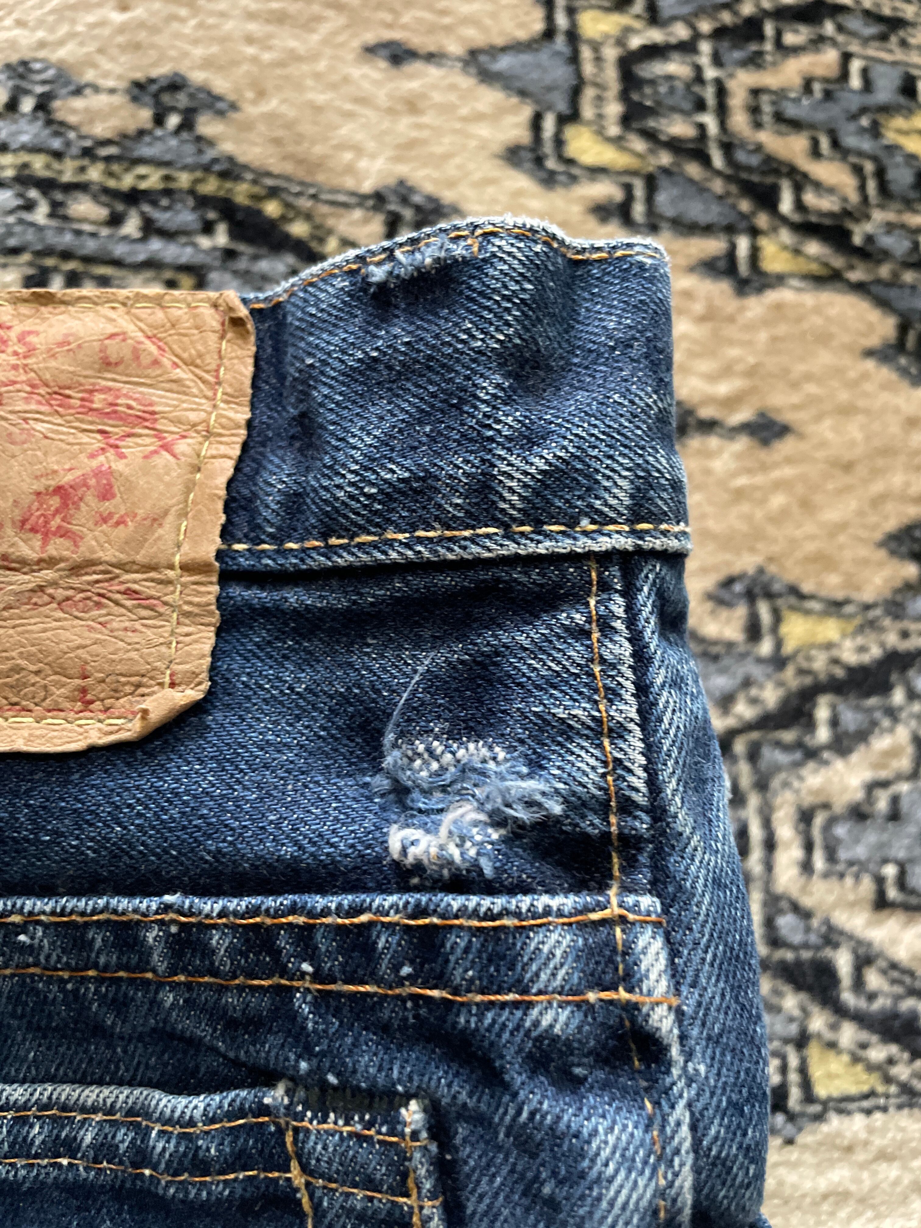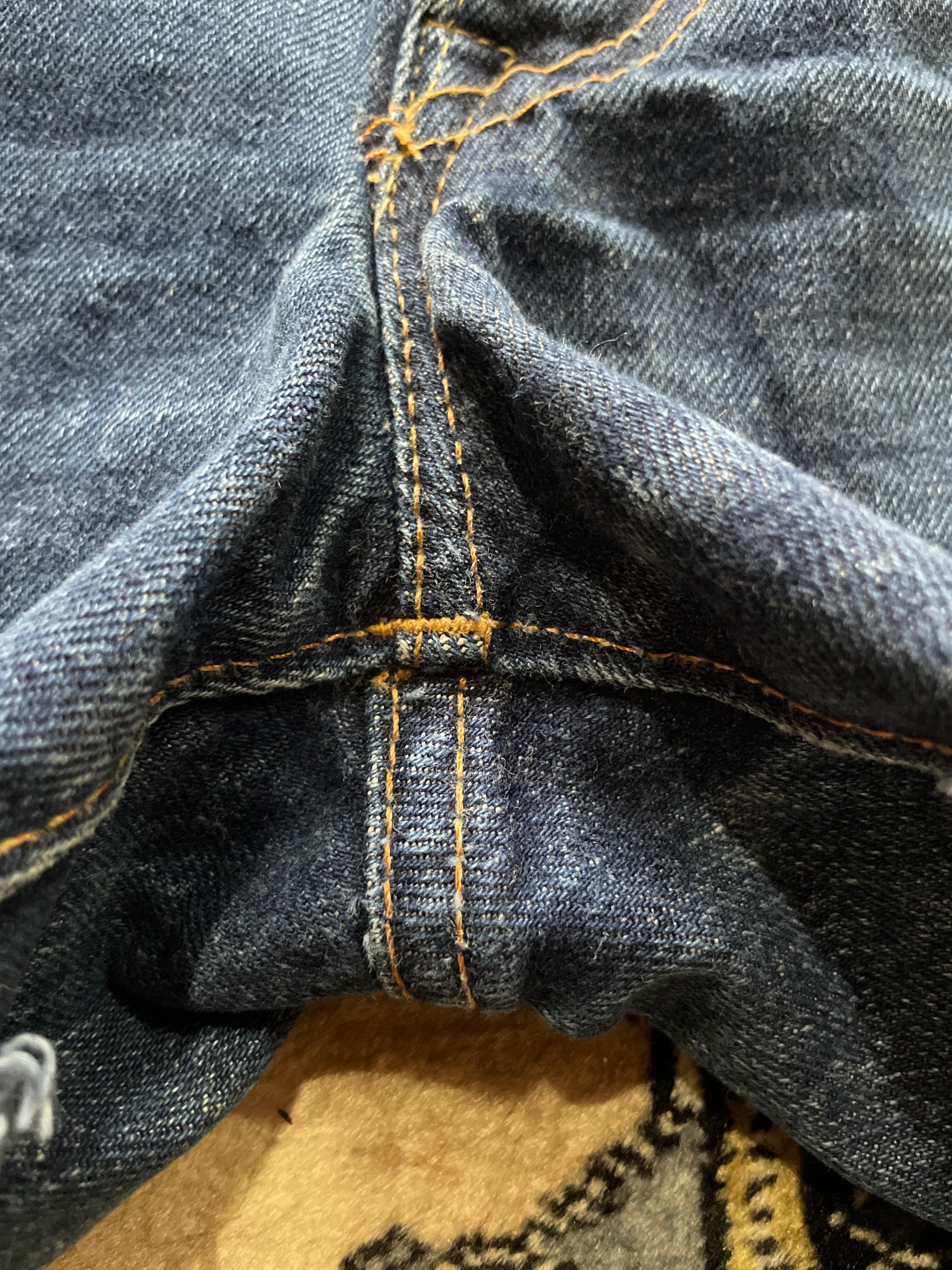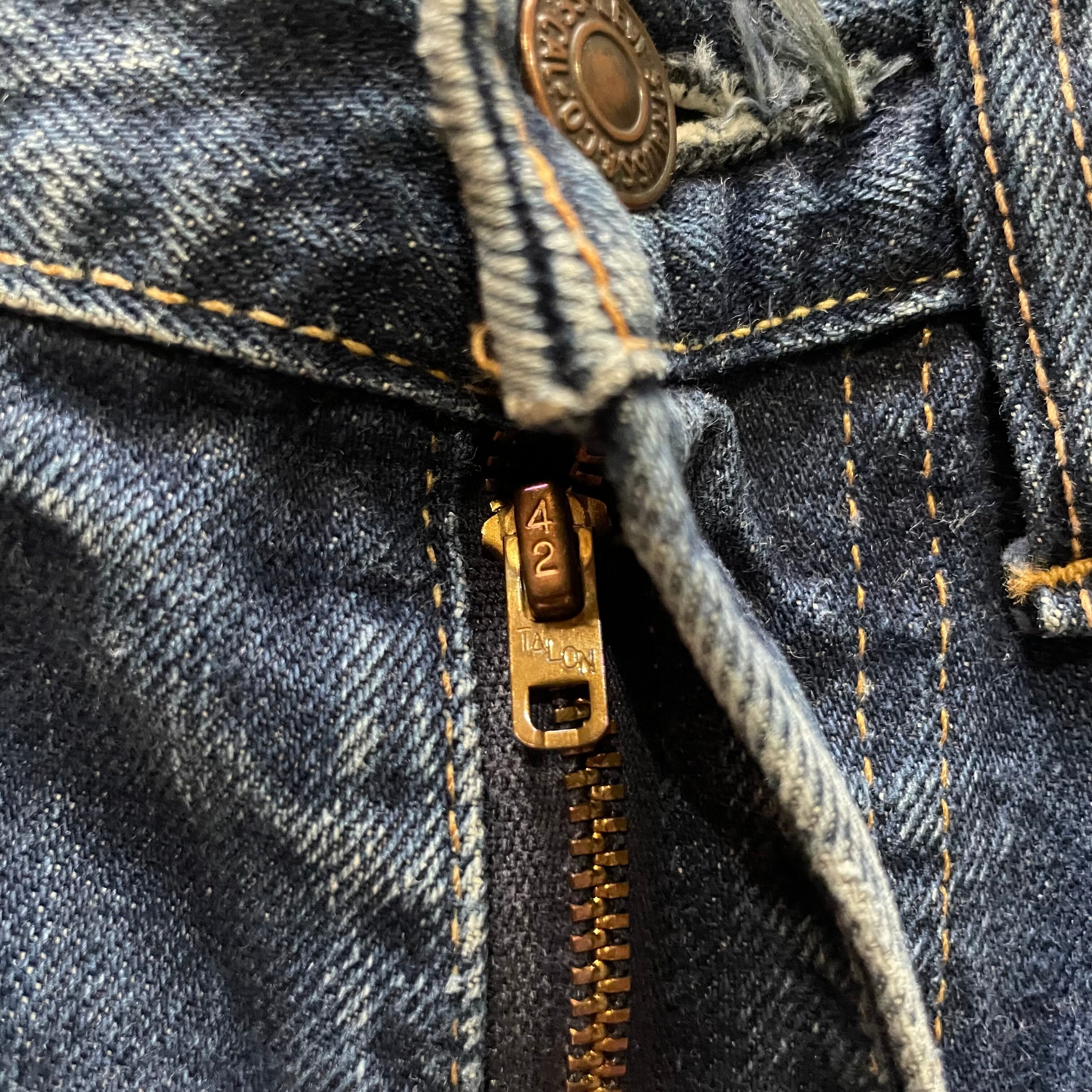 42TALONジップ、トップボタン裏刻印8、赤タブBigE.右の腰のベルトループが取れてありません。