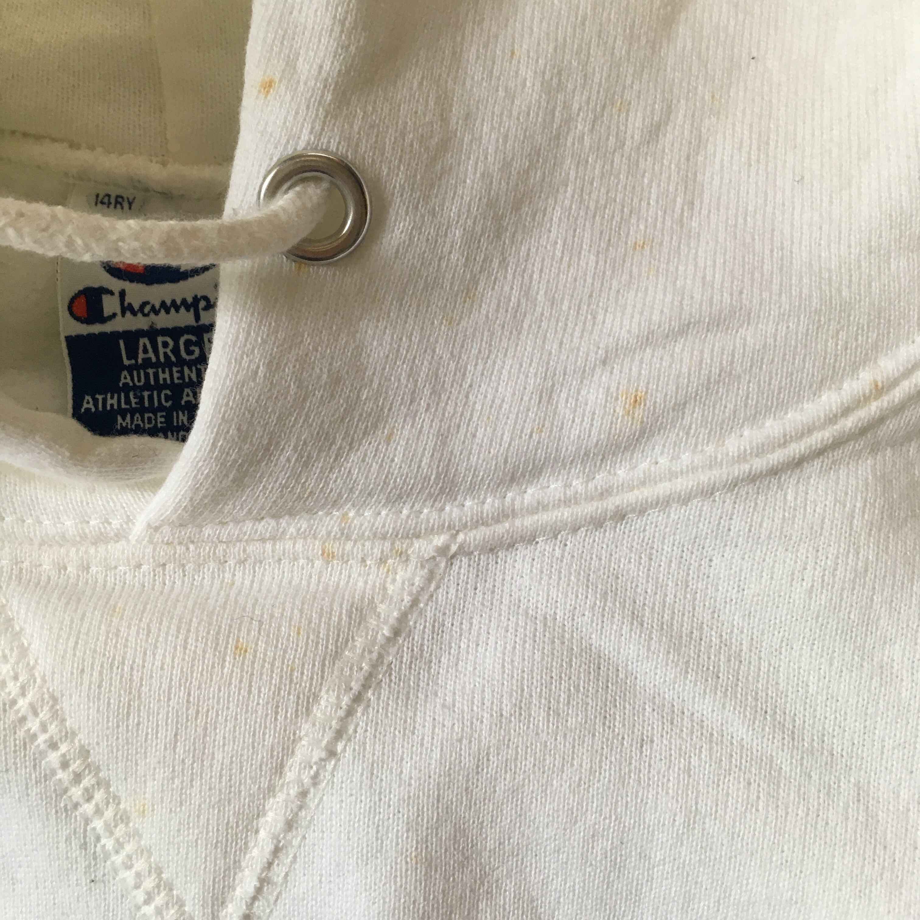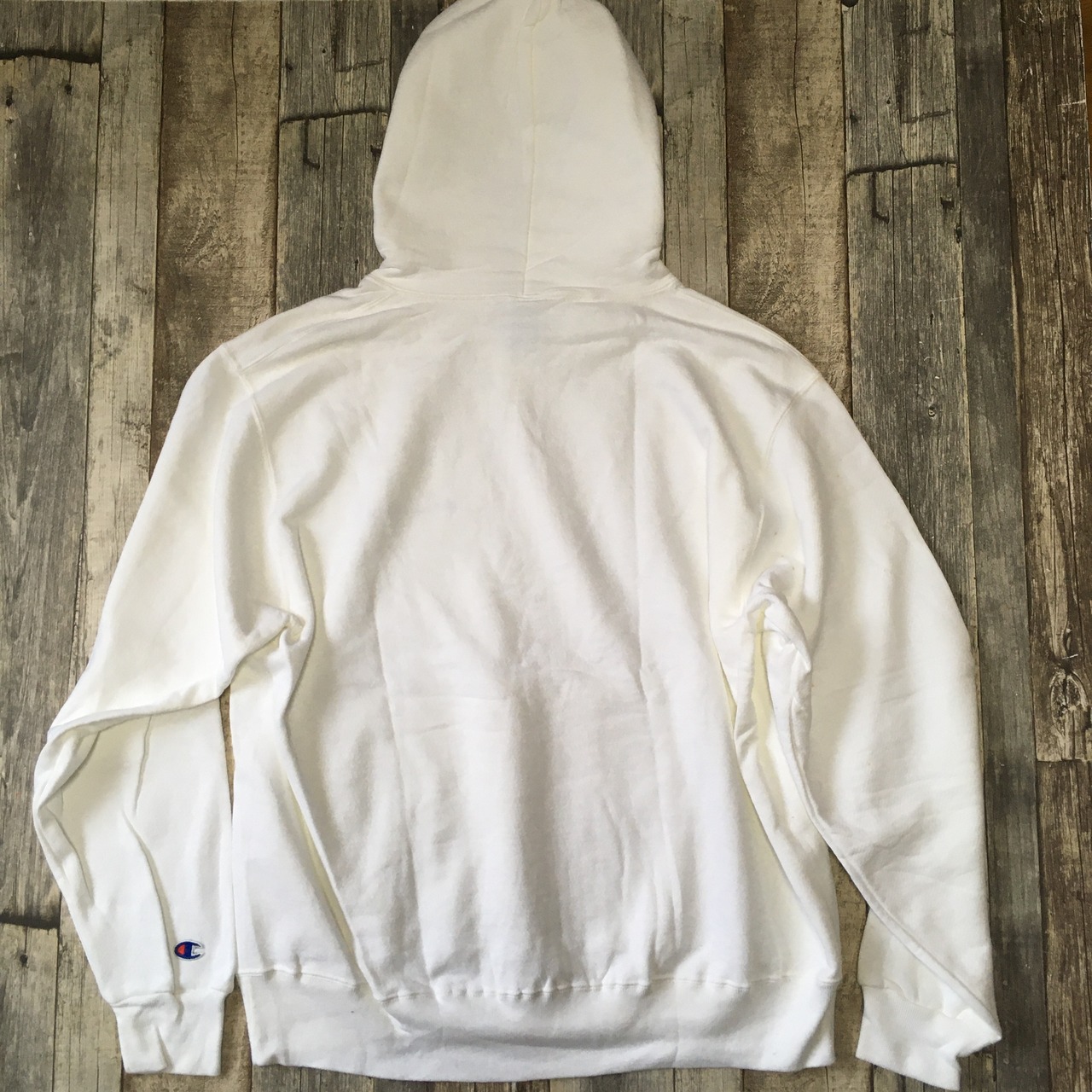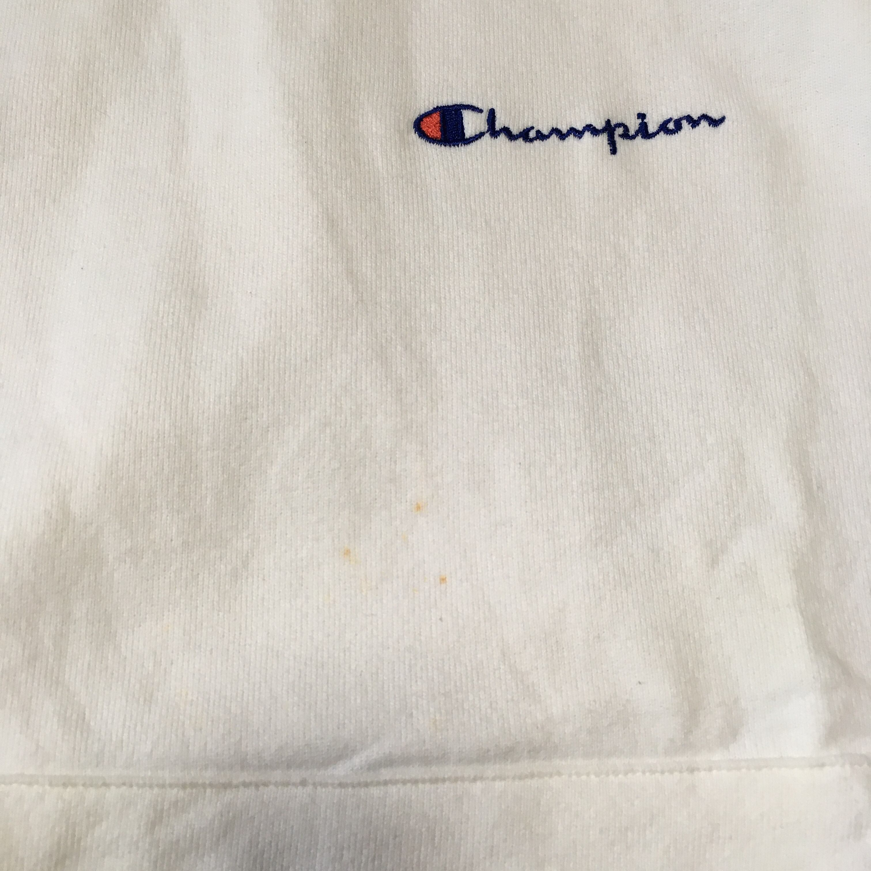 90年代のチャンピオンのスウェットパーカーです。首元、お腹、右袖肩に小さなシミ汚れがあります。生地はしっかりして破れはありません。