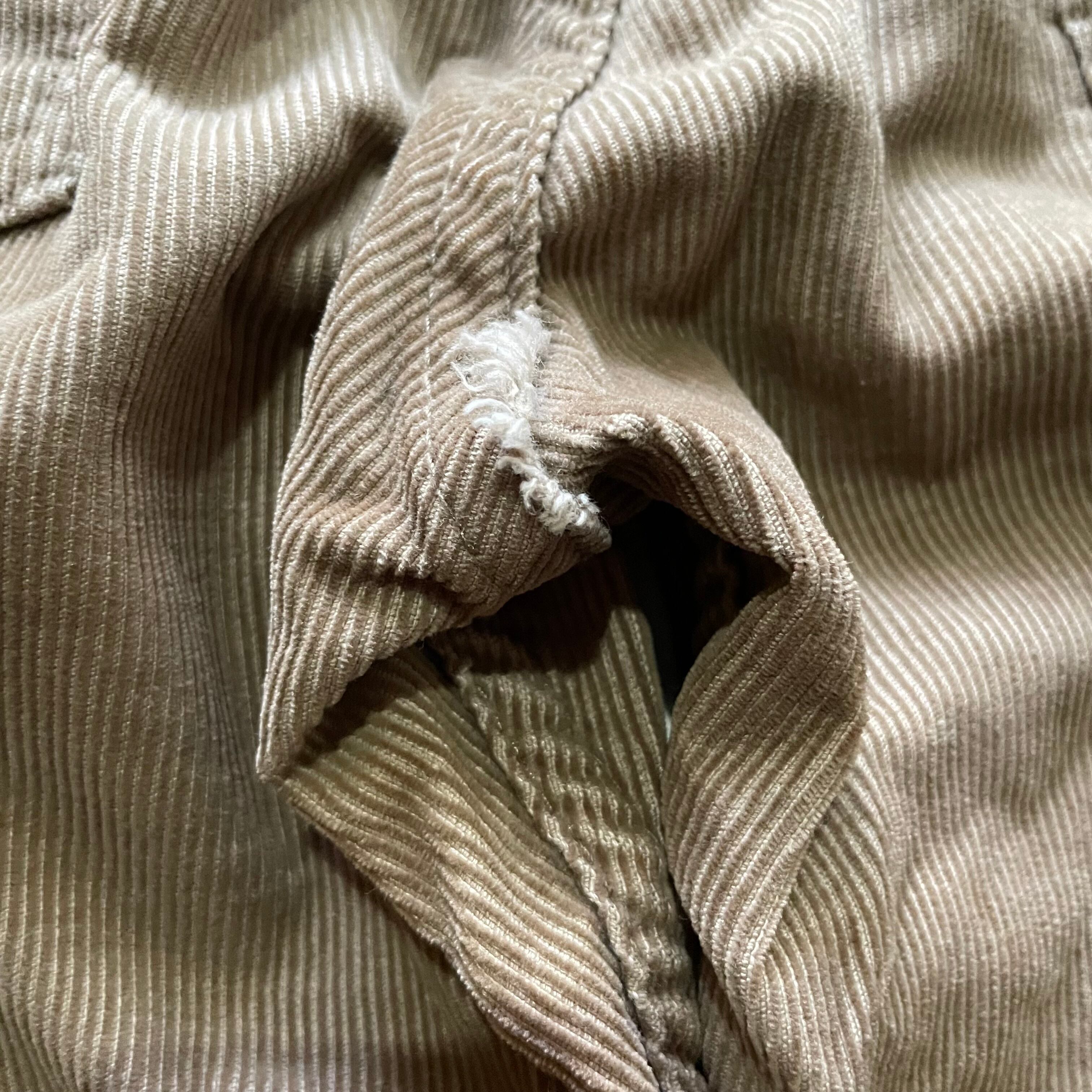 お尻の合わせの生地にほつれがあります。